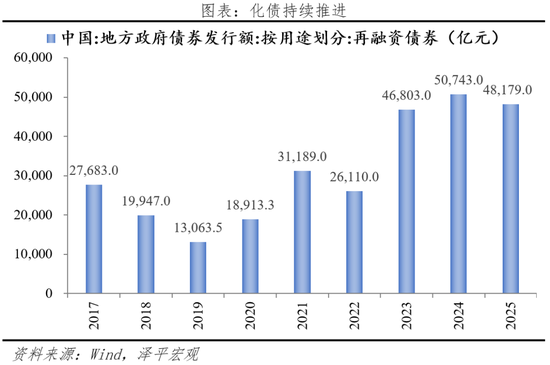 财政发力方式从单一基建扩张转向超长期国债、两重两新和化债的组合。2025年发行的1.3万亿元超长期特别国债持续投向“两重”“两新”,其中安排3000亿元专门用于消费品以旧换新,撬动相关商品销售约2.6万亿元;超长期国债资金累计支持约8400个项目,带动超过1万亿元总投资,推动全年设备工器具购置投资增长11.8%,拉动全部投资增长约1.8个百分点,财政+信贷撬动制造业投资和耐用消费的传导链条已经跑通。与此同时,一揽子地方政府隐性债务化解进入下半程,十四届全国人大常委会批准的6万亿元地方政府债务限额用于置换隐性债务,目前已完成约三分之二,后续继续安排2万亿元再融资专项债和8000亿元新增专项债支持化债,为地方后续稳投资、保民生腾挪空间。