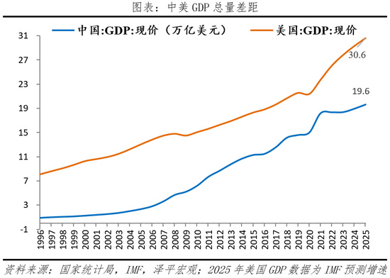 2025年中国GDP规模达140.2万亿元,首次超过140万亿,相当于19.6万亿美元,保持世界第二大经济体地位。IMF预估美国2025年GDP约为30.6万亿美元,中国GDP约相当于美国的64%。