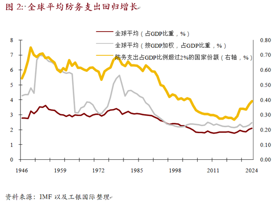 但值得注意的是,这同时亦是构成中长期风险的主要来源。从机制上看,其影响主要体现在三个方面:一是“名义乘数”效应。防务支出在短期内能够通过订单扩张与产业链传导提振需求,但本质上更多体现为资源在部门间的再配置,而非全要素生产率的提升。二是财政约束的显著弱化。报告中提到,历史经验显示大规模防务扩张通常持续约两年半,并伴随约2.6个百分点的财政赤字占GDP比重扩大及三年内约7个百分点的公共债务上升,财政可持续性面临侵蚀。三是社会支出的挤出效应。在财政资源向防务倾斜的背景下,教育、医疗等长期生产性支出往往被压缩,从而对长期潜在增长形成隐性透支。