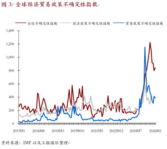 在此背景下,贸易结构的变化,正是全球经济从“全局最优”走向“局部最优”在实体经济层面的映射。参考本次IMF发布的展望,2025年全球贸易增速达到了5.1%,远高于3.4%的经济增速。从结构上看,这反映了全球经济运行机制正在进行深层调整。从需求端看,虽然部分经济体内生增长动能趋弱,但在成本上行与地缘冲击约束下,本土供给能力同步受限,导致对外部供给的依赖上升。从供给结构看,贸易增速的上行更多反映了供应链从全球化走向区域化。在地缘政治约束与产业安全诉求上升的背景下,全球生产体系正由效率导向转为安全导向。友岸外包、区域化布局以及多点分散生产,使得同一产品在跨境流转中的环节增加,从而推高贸易规模。从经济主体的行为层面看,贸易数据中亦包含了库存调整因素。在不确定性上升阶段,企业倾向于通过提前采买来保证库存管理,以对冲未来可能的供给冲击或价格波动。