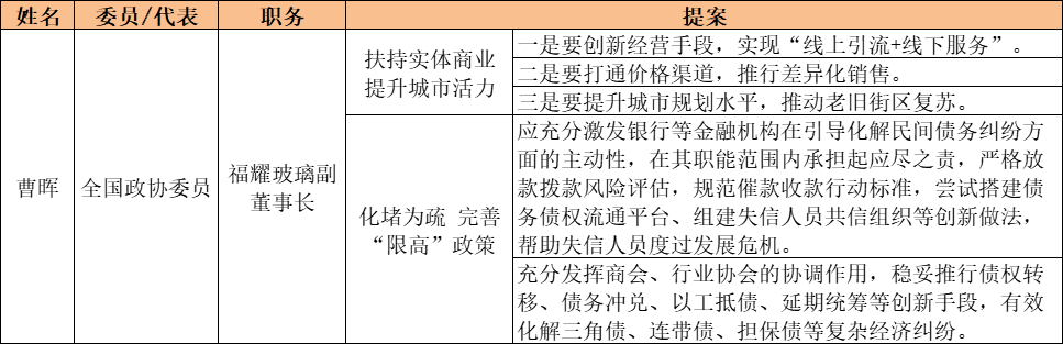 全国政协委员、福耀集团副董事长曹晖:扶持实体商业 提升城市综合活力
