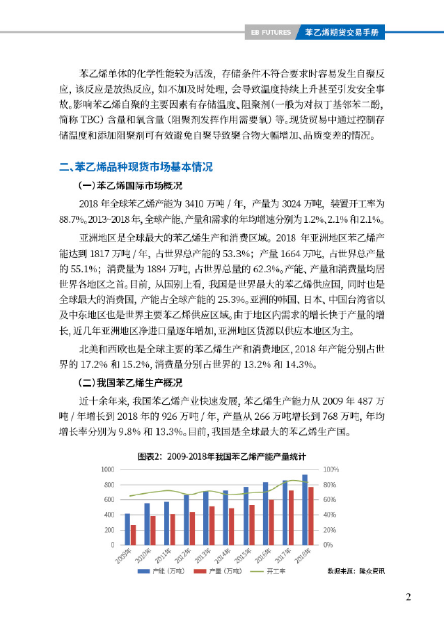 证监会近日批准大连商品交易所开展苯乙烯期货交易,苯乙烯期货合约正式挂牌交易时间为2019年9月26日。苯乙烯是重要的有机化工原料,上承石油和煤两大基础能源,下接合成树脂和合成橡胶两大产业。我国是全球最大的苯乙烯生产国和消费国。开展苯乙烯期货交易,能够健全化工期货产品体系,满足产业链企业的风险管理需求,促进相关主体健康稳定发展。
