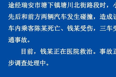 交警回应温州一特斯拉连撞2车:正在处理中,现场已可通行