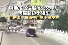 特斯拉飞速追尾公交车后再撞路边小轿车 目击者:车速一百三十码左右