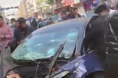 浙江瑞安一辆特斯拉与两车相撞,附近商户击碎车窗救出伤者
