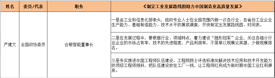 全国政协委员、合锻智能董事长严建文:制定工业发展路线图助力中国制造业高质量发展
