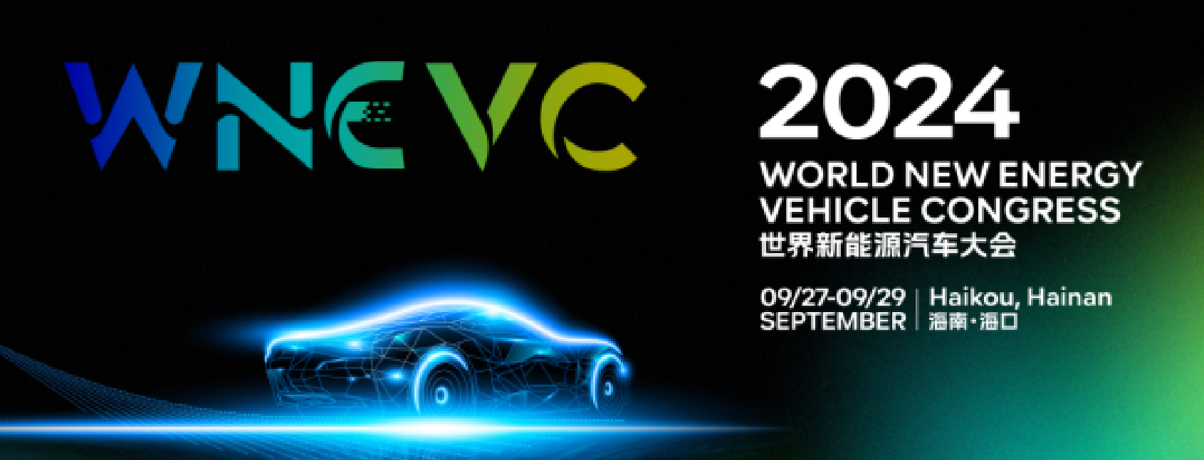 2024世界新能源汽车大会于9月27日-29日在海口举行。主题为“低碳转型与全球合作”。