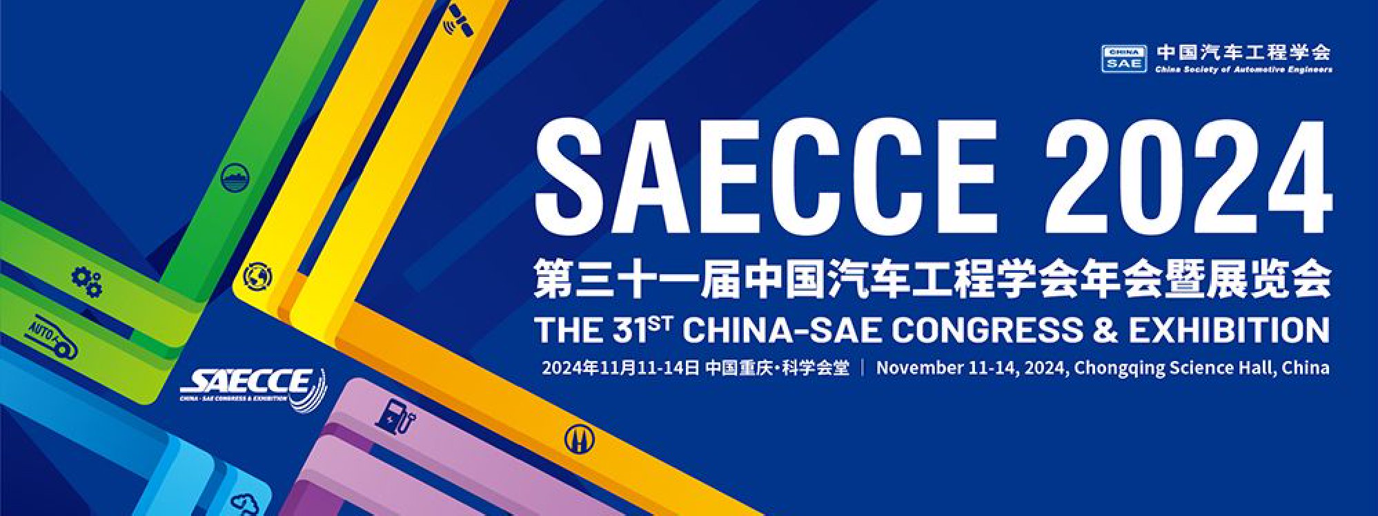 第三十一届中国汽车工程学会年会暨展览会(SAECCE 2024)于11月11-14日在中国重庆·科学会堂召开。SAECCE 2024以“智能涌现,迈进加速变革新时代”为主题,围绕节能技术、新能源技术、智能网联技术、基础共性技术技术、整车集成及性能技术、智能制造及装备技术六大领域开展会议展览交流活动。