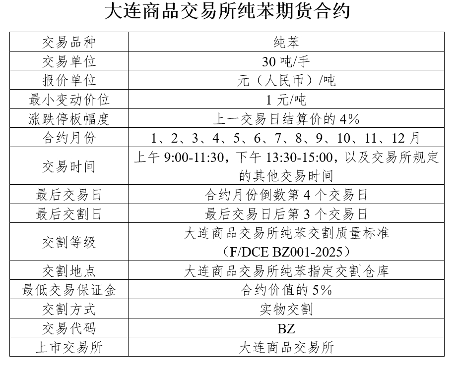 大商所公布纯苯期货交割有关事项和纯苯期货合约挂牌基准价